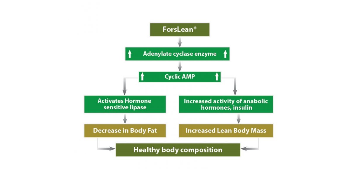 Coleus forskohlii is the only known natural source of the unique adenylate cyclase activating phytonutrient, forskolin1. Adenylate cyclase is the enzyme involved in the production of Cyclic Adenosine Monophosphate (cAMP), a significant biochemical agent in metabolic processes. Adenylate cyclase is also involved in the regulation of lipolysis or enzymatic breakdown of fat in the adipocytes (fat cells). Forskolin is therefore potentially useful in topical fat reduction.