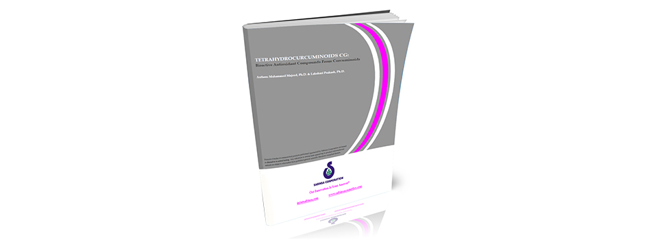 Tetrahydrocurcuminoids (THC)*, a colorless hydrogenated product derived from the yellow curcuminoids, (the biologically active principles from the rhizomes of Curcuma longa), function as efficient antioxidant compounds. The superior antioxidant property of THC, combined with the lack of yellow color, render this product useful in achromatic food and cosmetic applications that currently employ conventional synthetic antioxidants. Curcuminoids are reported to be potent antioxidant compounds by virtue of their molecular structure. THC have also shown significant antioxidant action in a number of in vitro and preclinical studies. Tetrahydrocurcuminoids are valued as the ultimate metabolites of the Curcuminoids in vivo. The poor circulating bioavailability of the parent curcuminoids, often attributed to their limited uptake due to poor water solubility, often impairs their biological effects in vivo. If supplied as their ultimate metabolites, this problem could be overcome. Substantial beneficial effects could be achieved with lower levels of these active metabolites as compared to the parent compounds. Several independent studies reported the significant antioxidant effects of the Tetrahydrocurcuminoids.