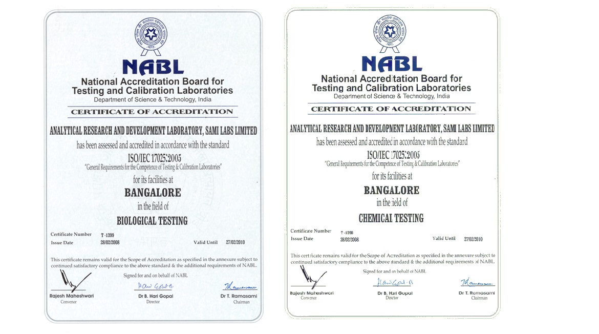 Additionally, India's National Accreditation Board for Testing & Calibration Laboratories successfully audited Sami Labs research & development and quality control labs. The accreditation certificate provides further validation of Sami Labs' equipment, analytical methods, data systems and regulation compliance.