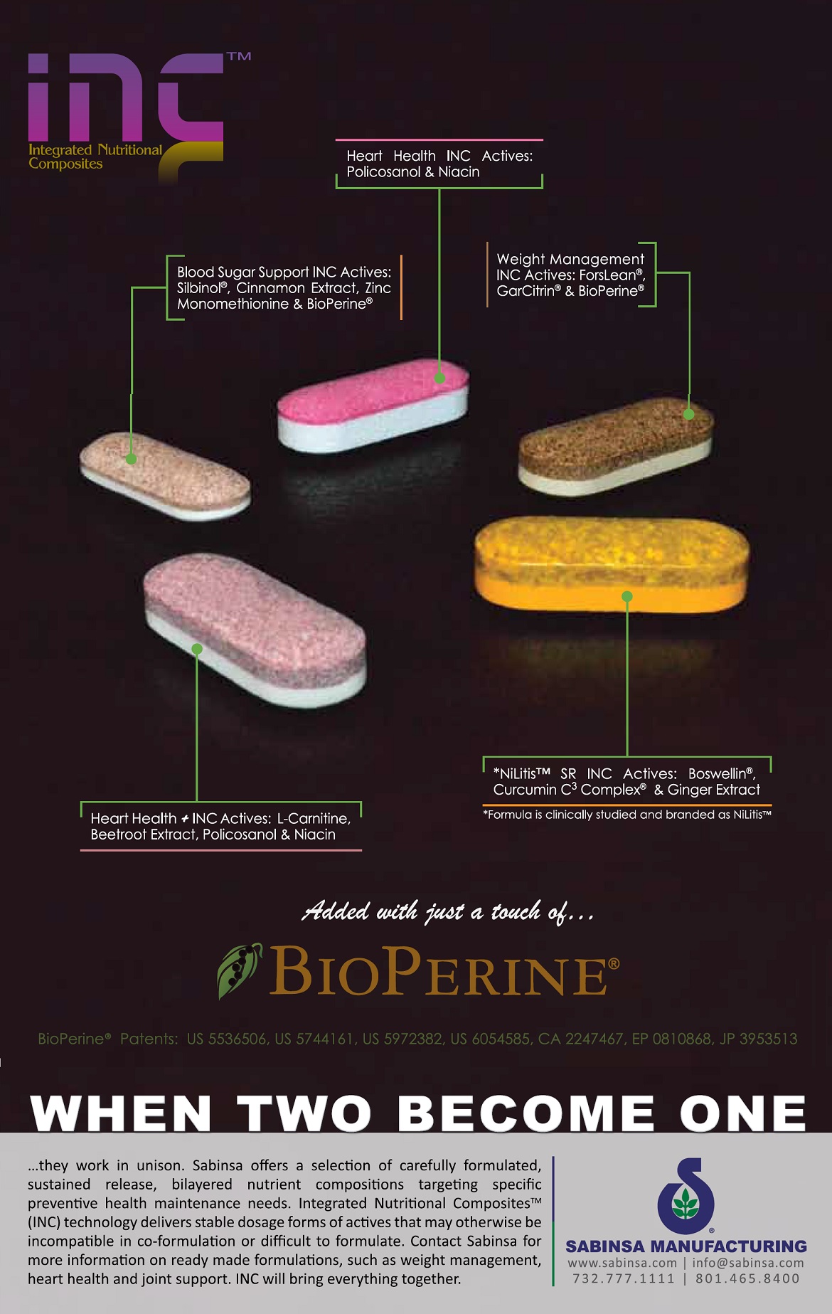 Sabinsa Manufacturing, a division of Sabinsa Corporation, now offers an innovative selection of Integrated Nutritional Composites (INC): bilayered, multi release nutritional compositions targeting specific health maintenance needs.