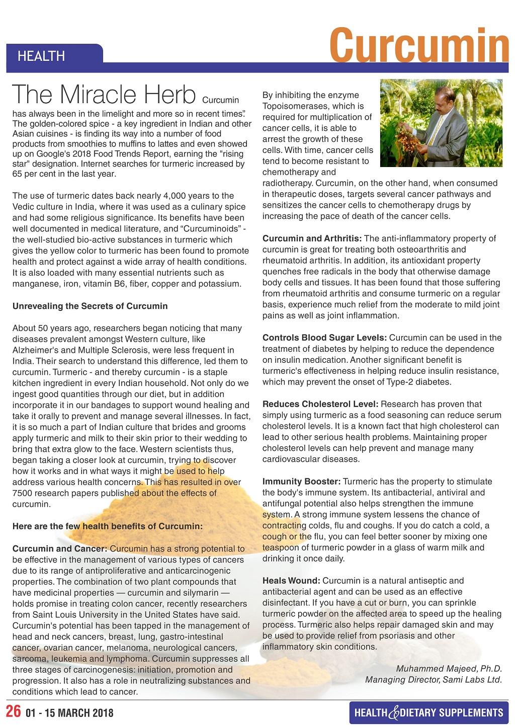An article by Dr. Muhammed Majeed featured in Health & Dietary Supplements Magazine
