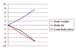 Figure 3: Relationship between changes of body weight, % of fat and lean body mass