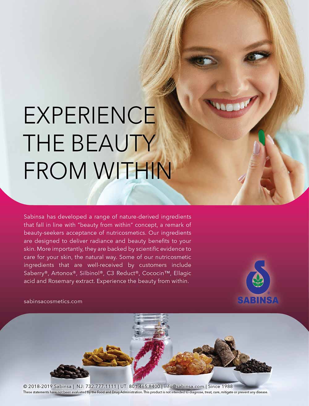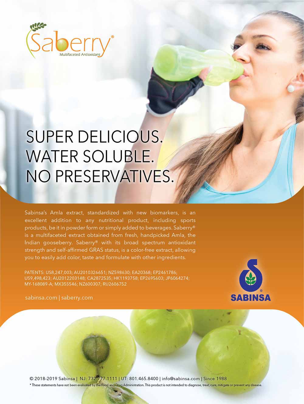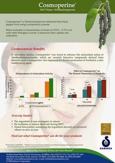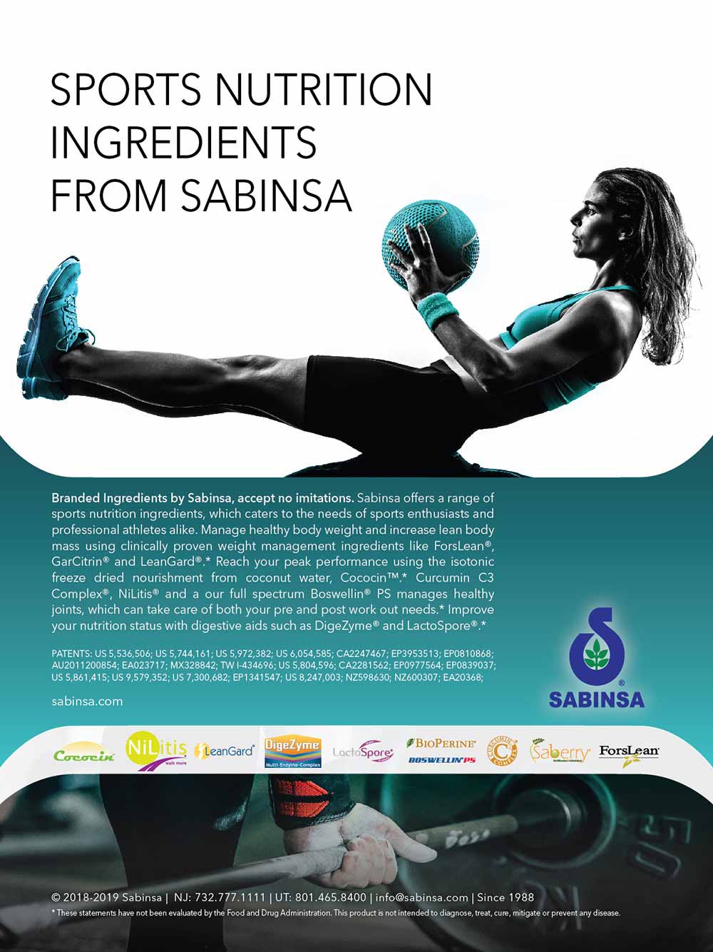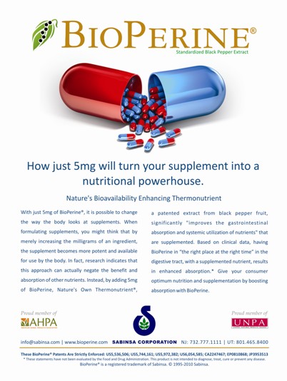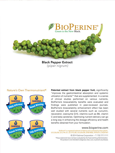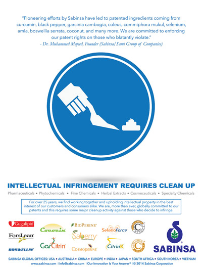 Usage disclaimer: The information pertaining to any marketing materials by Sabinsa, is for general purposes only. Users are urged to check the validity of patents if any, on any Sabinsa items for their intended use.