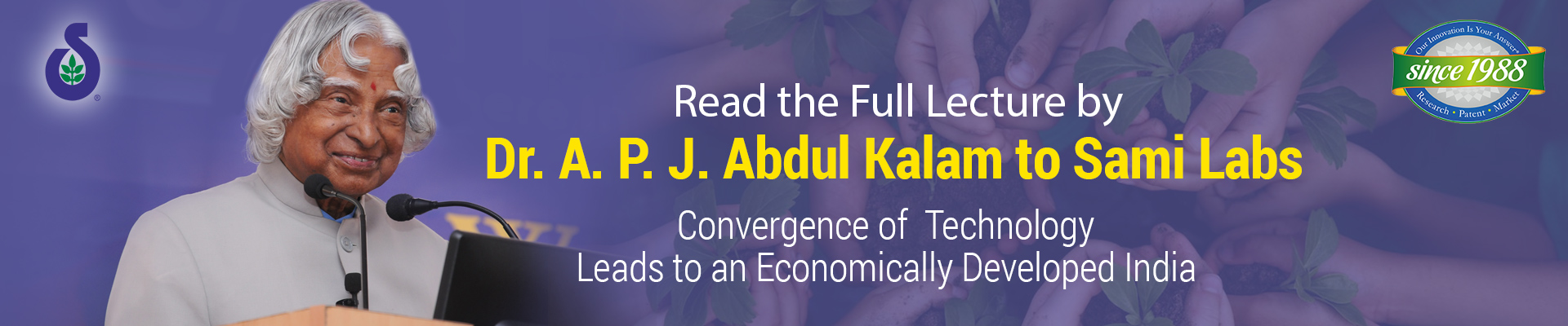 I am happy to know that Sami Lab has grown to six manufacturing facilities across the nation and also in Utah, USA. I am glad to know that Sami Lab envisions to create products which are "designed to deliver" and hence meet international expectations and norms and today this lab has 92 US and International Patents. I congratulate all of you for such these achievements.