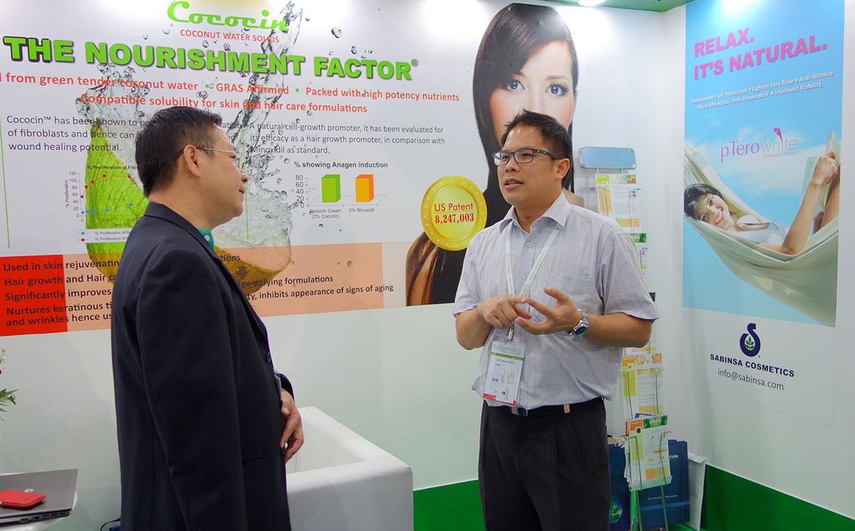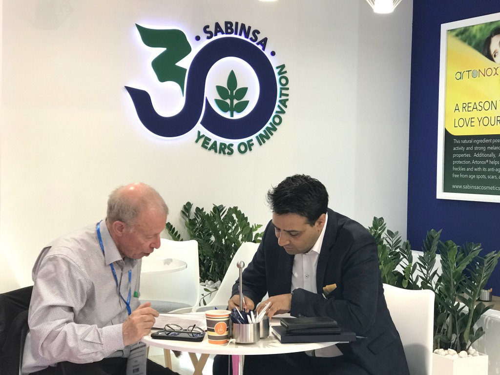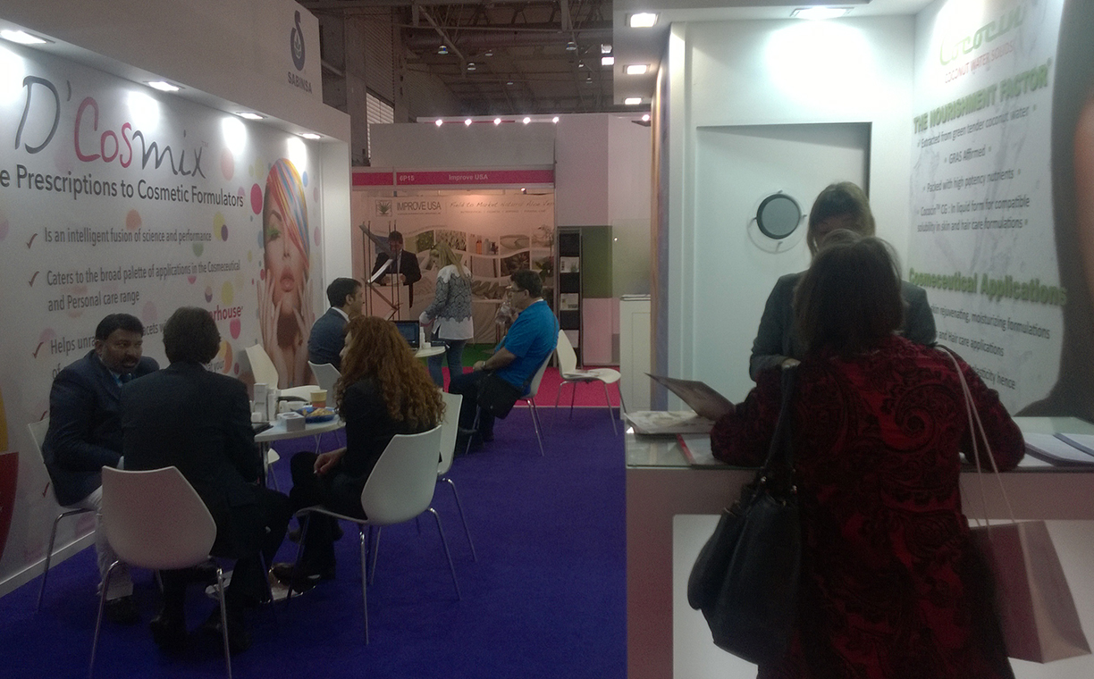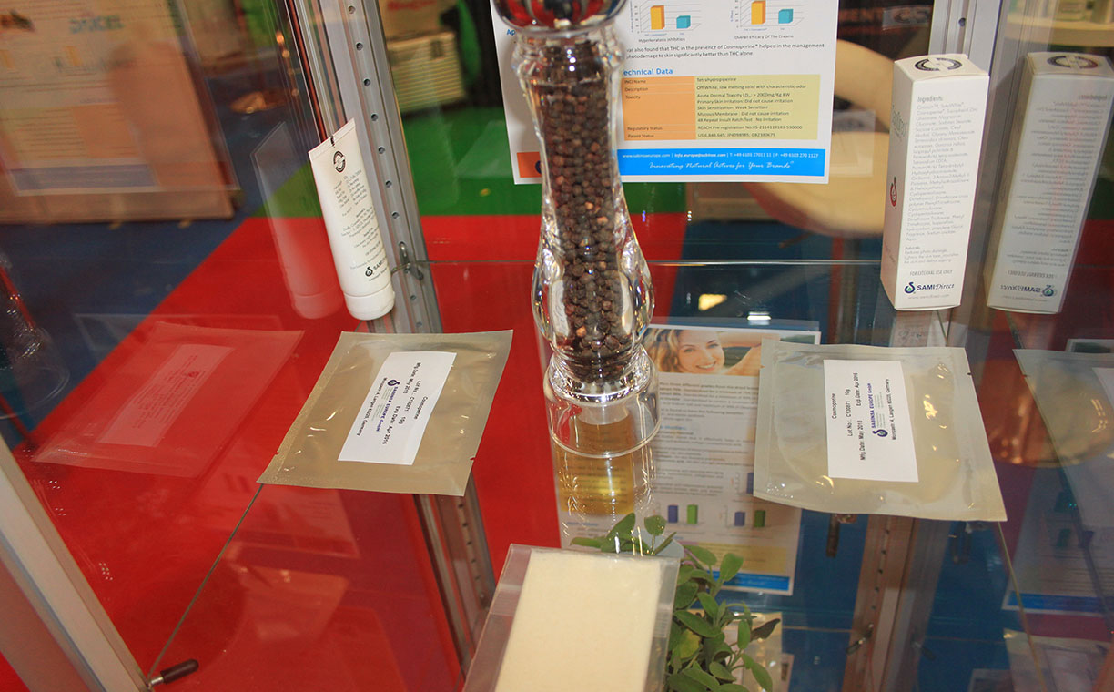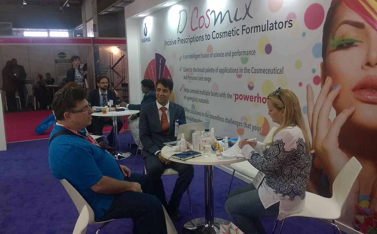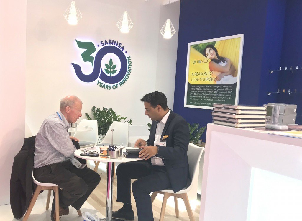 The multifunctional cosmetic ingredients offered by Sabinsa such as PteroWhite, SabiWhite, TetraPure, and Boswellin CG caught most of the interest. Anti-­‐bacterial and anti- fungal products were another major area of interest, with coleus oil generating notice. With cosmetic companies looking to “go green” with natural ingredients, Sabinsa’s cosmeceuticals provide an excellent resource for formulators and cosmetics chemists.